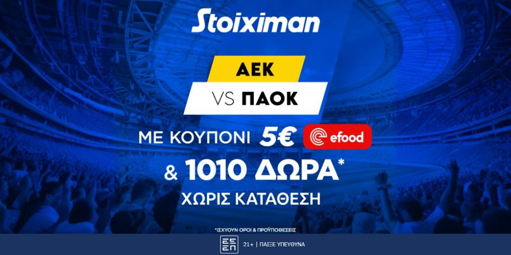 Το μεγάλο ντέρμπι δικεφάλων υπόσχεται πλούσιο θέαμα και η νέα προσφορά* της Stoiximan κάνει την εμπειρία ακόμη πιο… χορταστική!