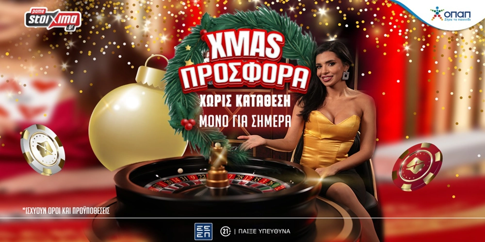 Μια σούπερ χριστουγεννιάτικη προσφορά* τους περιμένει σήμερα (24/12) όλους στο Live Casino του Pamestoixima.gr!